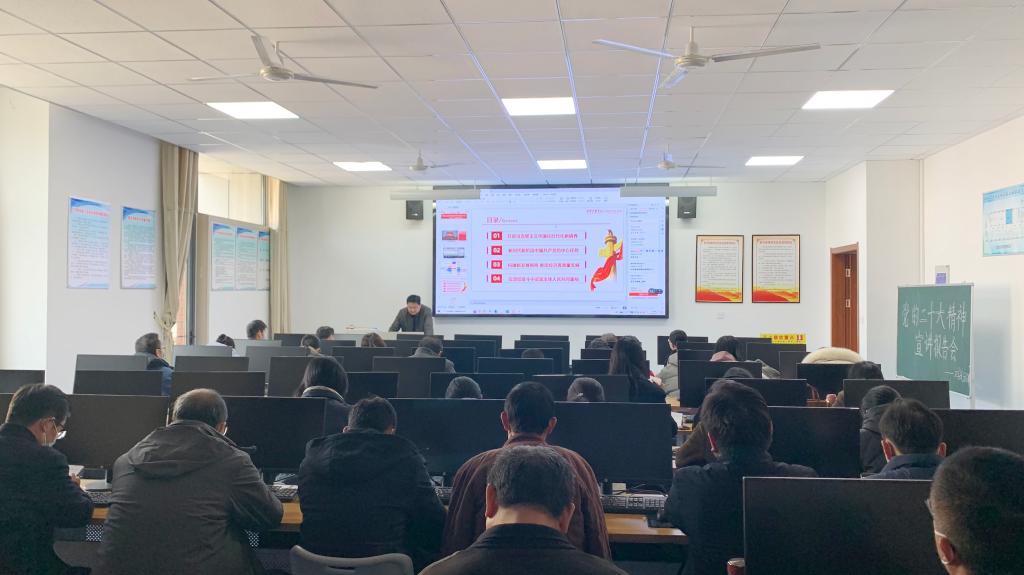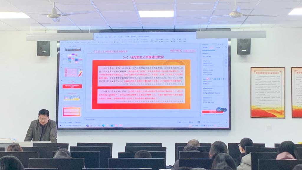 12月7日下午,SUNBET申博院长张爱民在薛城校区豁然楼A417以《中国式现代化推进中华民族伟大复兴——关于党的二十大精神的认识和体会》为题作宣讲,SUNBET申博全体教职工参加。