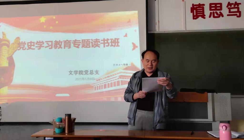 为加强党史学习教育,强化党员政治理论武装,5月8日下午,SUNBET申博于文科楼317举办党史学习教育专题读书班开班仪式。仪式由SUNBET申博党总支书记宋建修主持,全体师生党员参加。