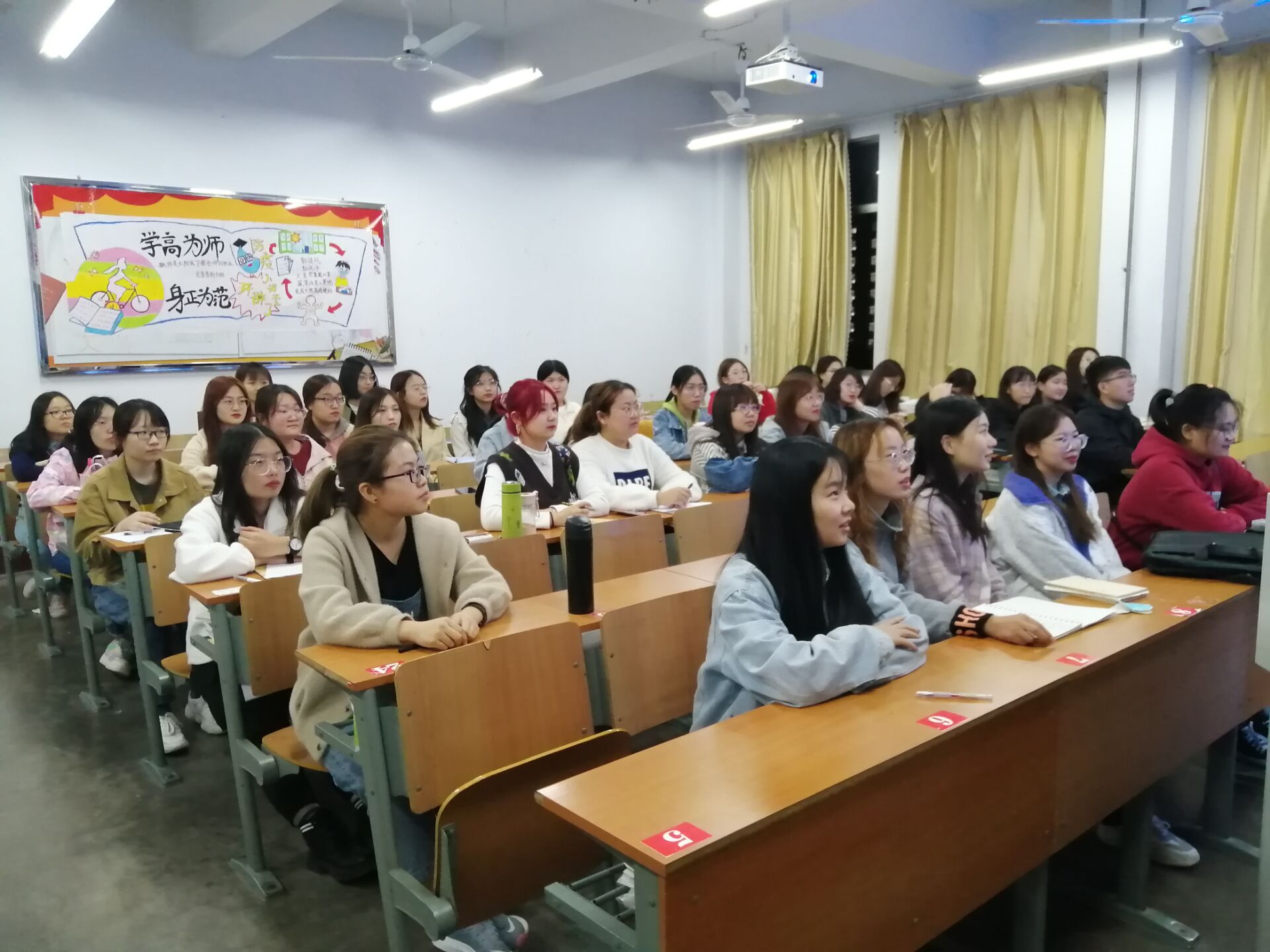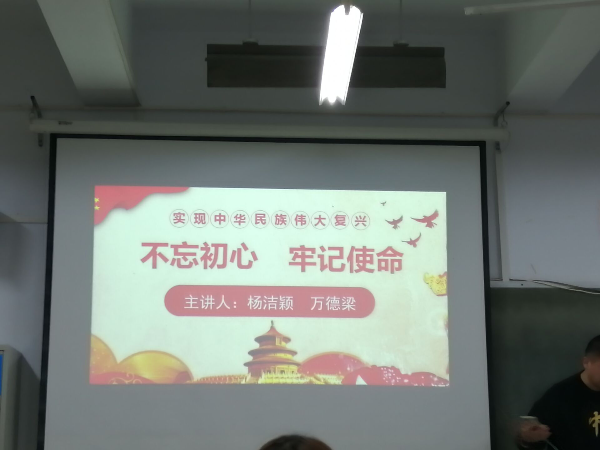 本次党课培训,万德梁同志从学习主题教育的背景、内涵、要求、重要意义等四方面进行了详实讲述,重点讲述了学习主题教育的内涵和重要意义,并通过播放视频的方式加深了同学们对主题教育的进一步了解和记忆。杨洁颖同志主要讲述了如何成为一名“四讲四有”的合格党员,鼓励在座的同学们时刻以一名合格党员甚至党员干部的标准要求自己,反思、警醒自身,发挥贡献精神服务群众。