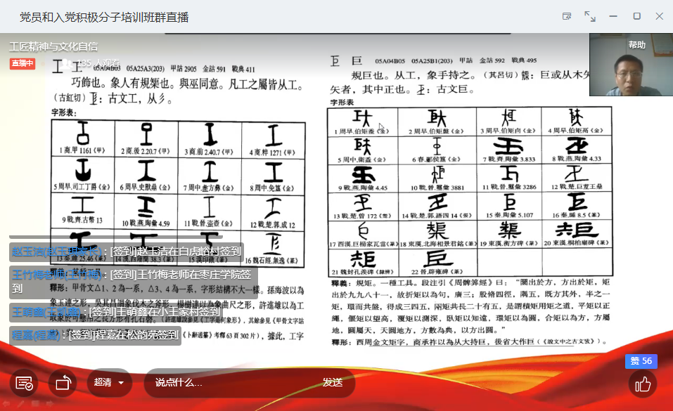 本次培训以“工匠精神与文化自信”为主题。首先,史大丰围绕中国古代科学与工匠技术史、工匠精神的内涵、弘扬工匠精神、工匠之术、工匠精神的现实意义等方面进行讲授,运用“精益求精、严谨、耐心专注、坚持、专业、敬业”这六个词来解释工匠精神。紧接着,史大丰通过对比漫画界中的宫崎骏、文学界中的杨绛等行业翘楚的成就,阐释了他心目中的工匠——当把一件事情做到极致时,就能成为这个行业中的工匠。最后,史大丰建议大家将工匠精神运用到现实生活与实践中,去更好地热爱工作,实现自己的人生价值。