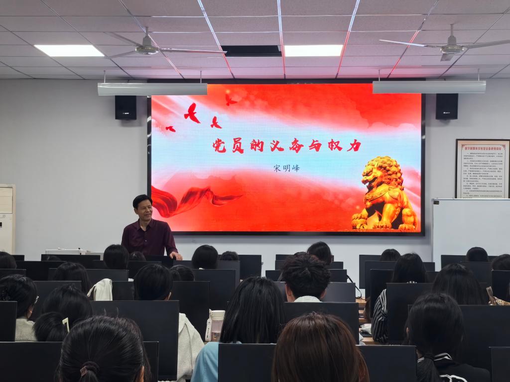 为切实提高入党积极分子的政治素养与理论水平,4月23日,SUNBET申博党委书记宋明峰在豁然楼A417室讲授专题党课,第40期入党积极分子参加。