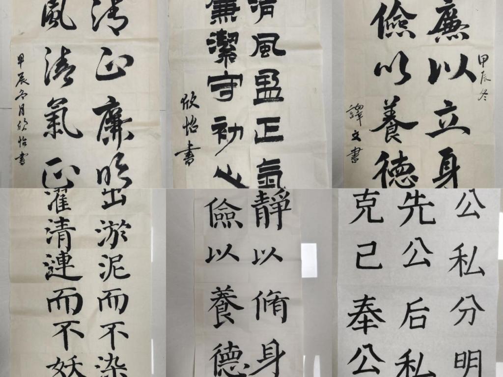 活动当天,我院师生齐聚一堂,共同见证了这场视觉与心灵的盛宴。比赛现场,参赛者们挥毫泼墨,以笔传情,将廉洁文化的精髓融入书画之中。一幅幅作品或遒劲有力,或温婉细腻,不仅展现了参赛者们的艺术才华,更传递了他们对廉洁文化的深刻理解和崇高敬意。