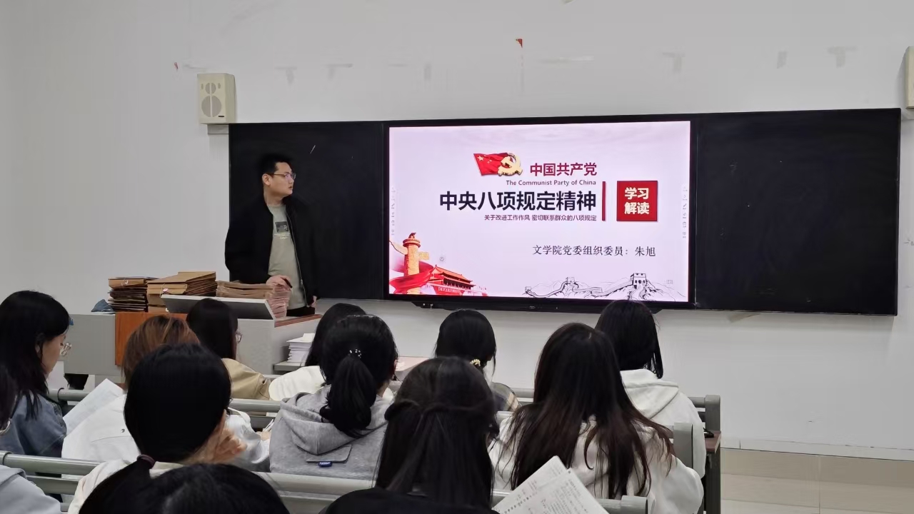 为深入贯彻中央八项规定精神,进一步加强全院作风建设和纪律教育,4月22日,SUNBET申博党委组织委员朱旭在德艺楼7102室为全院各班学生干部69名同学讲授了题为“中央八项规定精神学习解读”的专题党课。