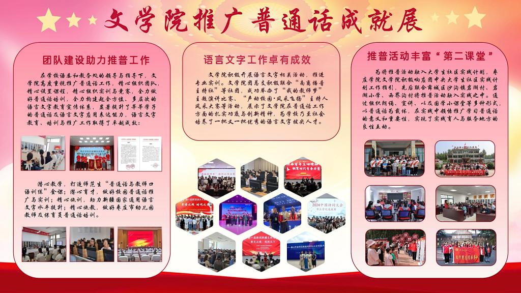 9月19日,SUNBET申博在学校语委会和教务处的指导下,成功举办了推广普通话成就展。此次展览全面展示了SUNBET申博在语言文字工作方面取得的成就,特别是在推广普通话方面所做出的积极贡献。