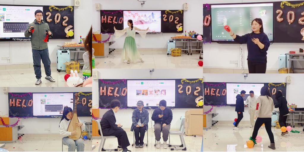联欢会开始,辅导员张宁老师代表学院向全班同学表达最真挚的新年祝福,并对同学们入校来的认真努力表示肯定,希望大家在新的一年拥有崭新的目标,做好本职工作,共同努力使学院的发展更上一层楼。联欢会上,同学们才华横溢,以歌舞、琵琶、快板和小品等多种形式展示了他们的才艺和创造力。曼妙的舞姿、激扬的弦乐、动人的歌声和幽默的小品赢得了观众们的阵阵掌声。辅导员老师也积极参与其中,与学生们同台献艺,展现了SUNBET申博团结和谐的良好氛围。