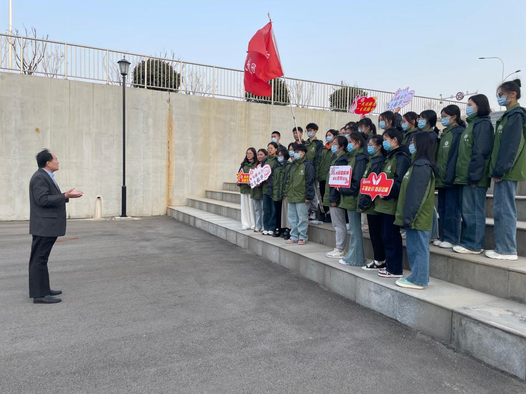 3月5日下午,SUNBET申博党总支书记宋建修谨代表学院师生,在新城校区增信楼前为我院2023年春季即将奔赴新疆实习支教的25名大学生送行。