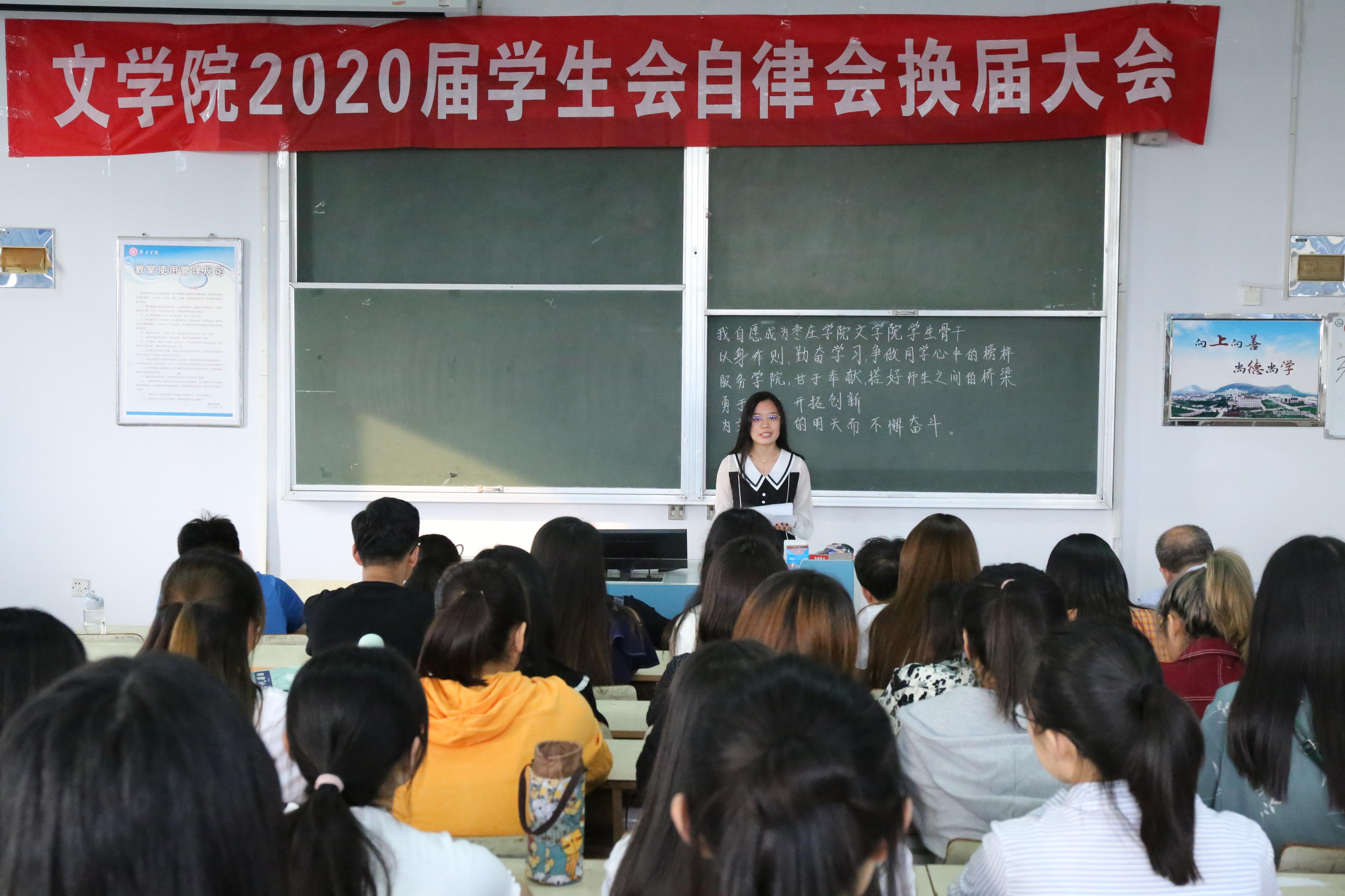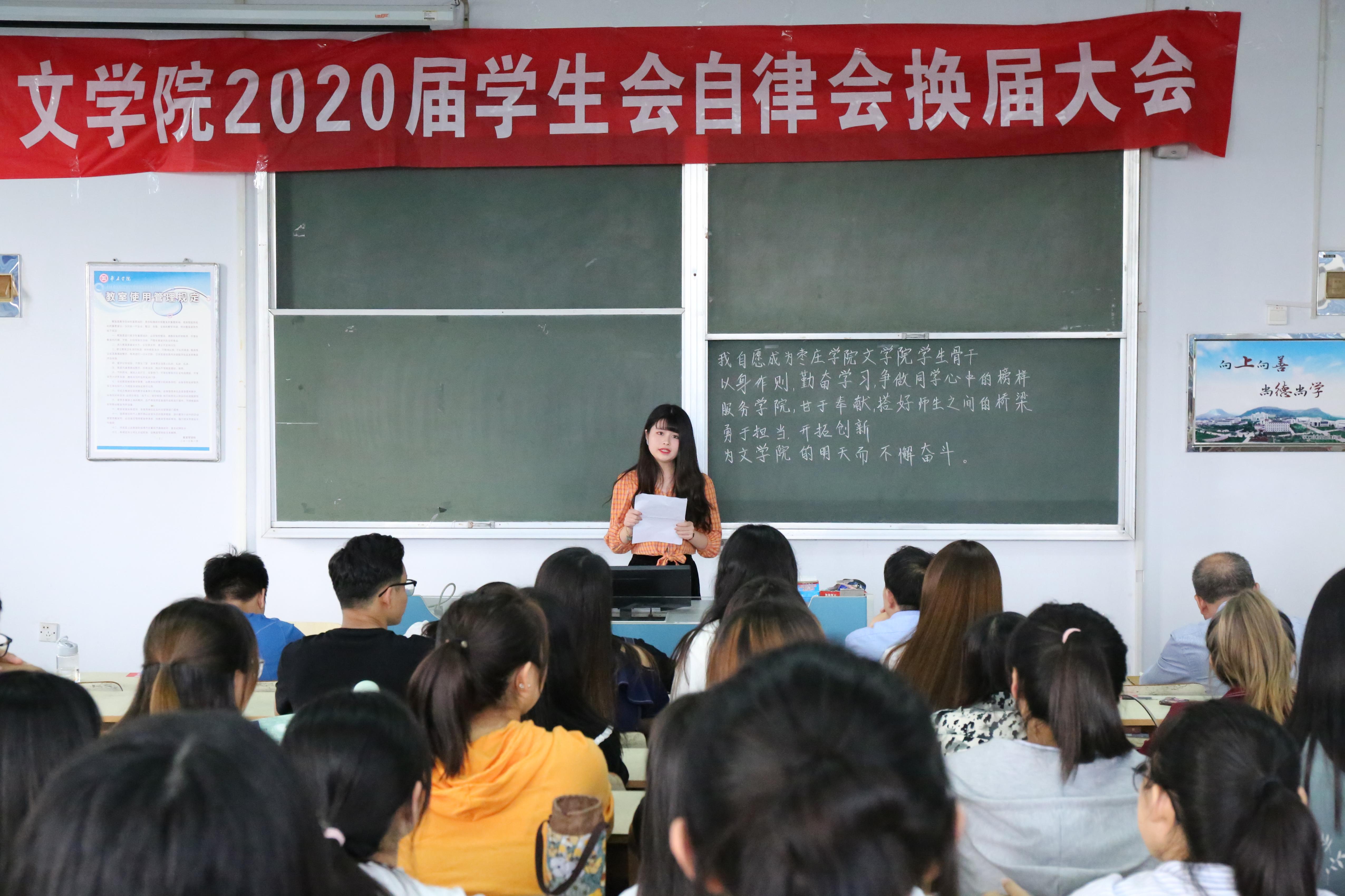 9月30日下午,SUNBET申博在文科楼217举办2020届学生会、自律会换届大会。SUNBET申博党总支书记宋建修老师、副书记王昌龙老师、各班辅导员老师及学生会、自律会新老成员80余人参加本次换届大会,本次会议由团总支书记韩笑老师主持。
