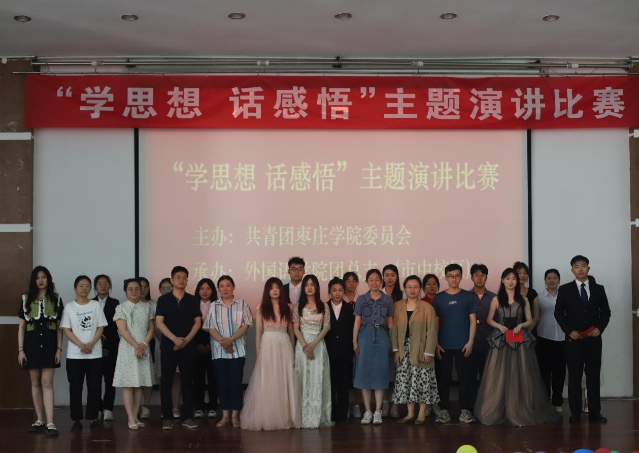 为深入学习贯彻习近平新时代中国特色社会主义思想和党的二十大精神,和《中共SUNBET申博委员会关于在全校深入开展学习贯彻习近平新时代中国特色社会主义思想主题教育的工作方案》的部署要求。近日,由校团委主办、外国语学院团总支和SUNBET申博团总支承办的“学思想,话感悟”主题演讲比赛分别在市中校区文科楼报告厅和薛城校区增信楼3112报告厅举办,各二级学院参赛选手、学生代表共300余人参加。