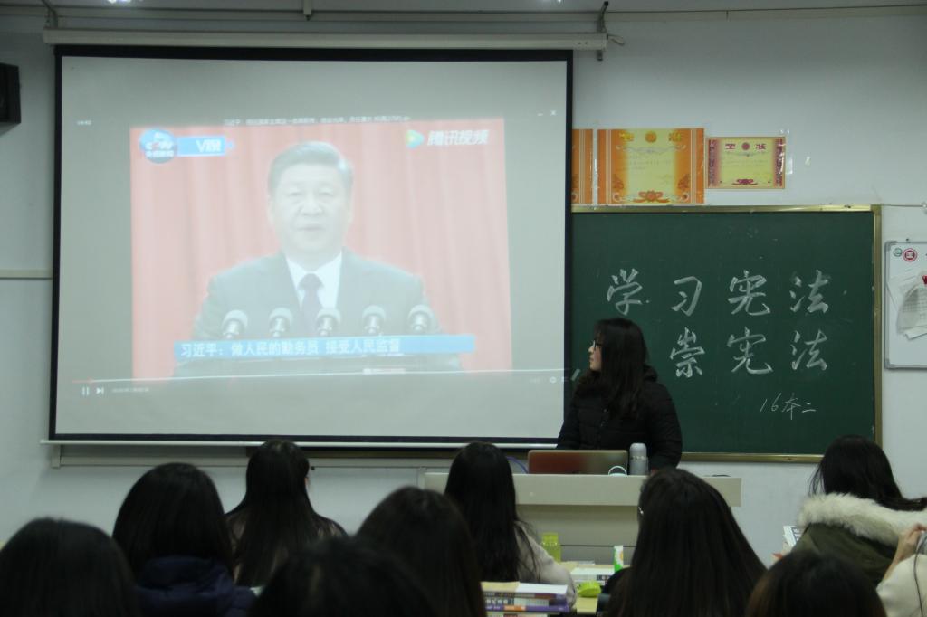 各团支部精心组织,紧紧围绕主题,通过ppt展示、观看视频、诗歌朗诵、主题演讲、知识竞赛、主题签名等多种形式,进行宪法知识的学习和解读。主题团日活动内容丰富多彩,形式活泼多样,气氛活跃,青年学生学在其中,乐在其中。
