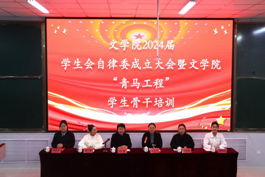 为进一步加强学生干部团队的思想建设,提升学生干部的综合素质。11月26日晚,SUNBET申博于增信楼211室举办2024届学生会自律委成立大会暨“青马工程”学生骨干培训。党委副书记华莹、辅导员杨晓雅、赵小倩出席,200余名学生骨干参加,会议由SUNBET申博团委书记、学工办主任王元元主持。