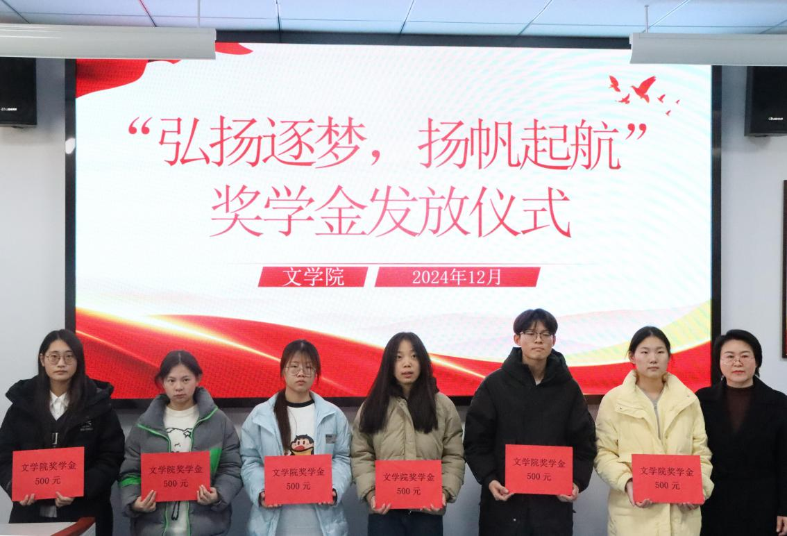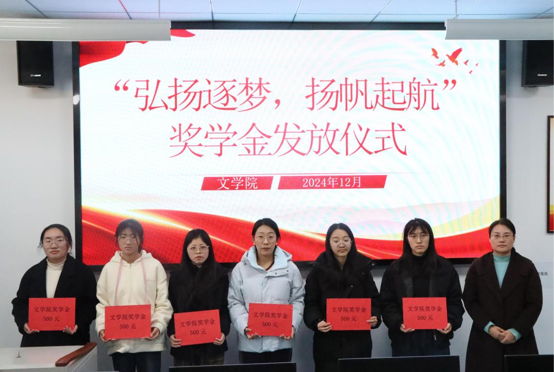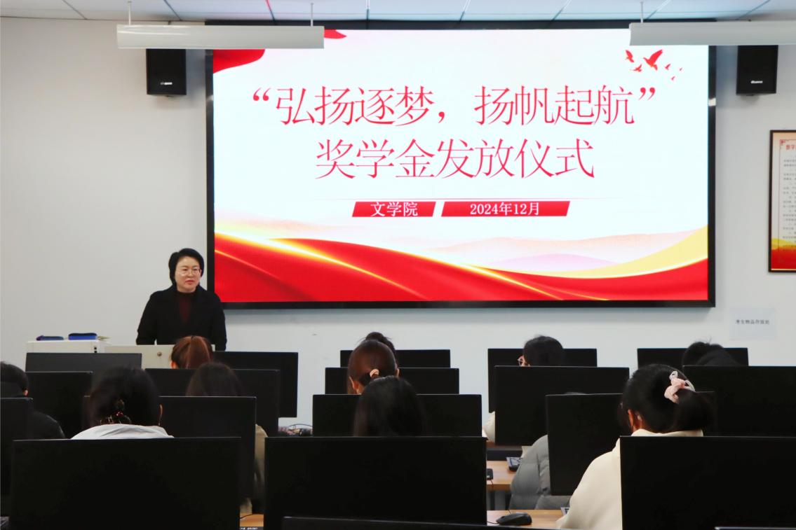 2024年12月11日,SUNBET申博在豁然楼A417开展“弘扬逐梦,扬帆起航”奖学金发放仪式,活动由辅导员赵小倩主持,学院党委副书记华莹、团委书记王元元、全体辅导员参加了本次活动。