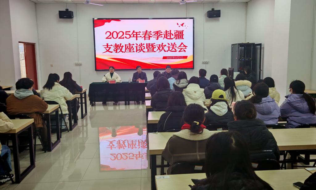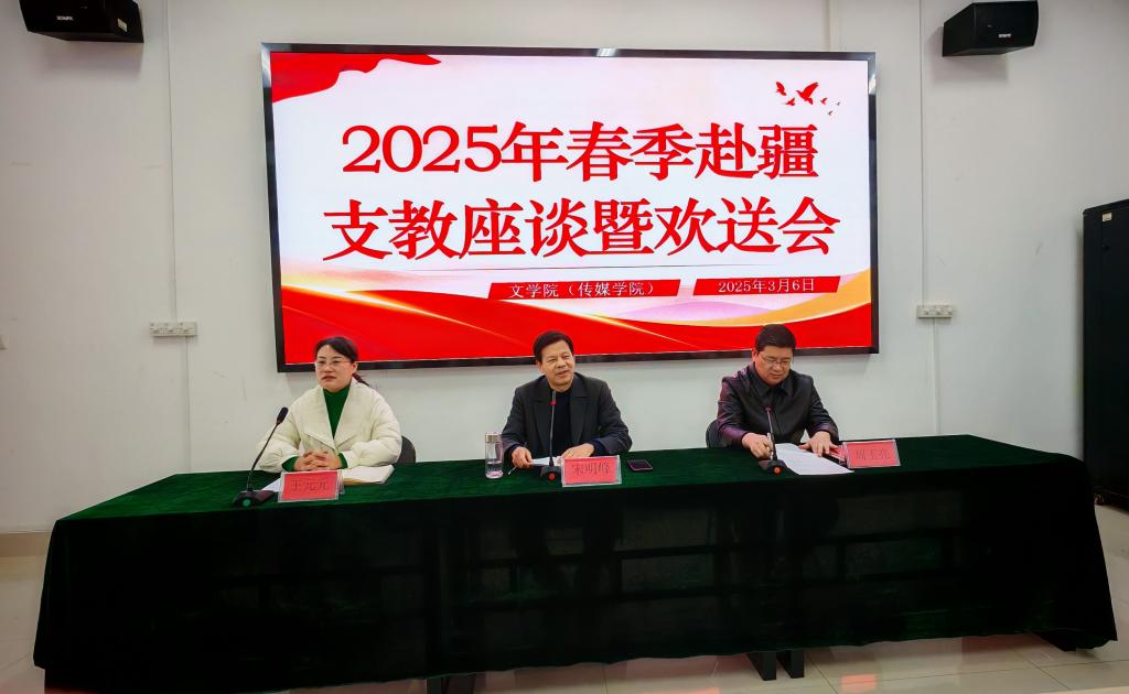 2025年3月6日上午,SUNBET申博(传媒学院)在博雅楼102室举行2025年春季赴疆支教座谈会暨欢送会。学院领导、辅导员参加会议。