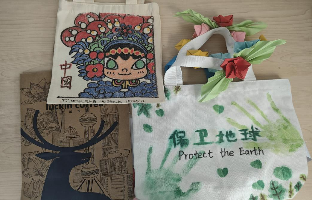 “绿‘袋’创意绘,环保新主张”环保袋涂鸦大赛则成为学生创意迸发的舞台。同学们以环保袋为画布,用丙烯颜料、拼贴等形式绘制垃圾分类、碳中和、濒危动物保护等主题图案。获奖作品将实用性与艺术性巧妙结合,让环保袋成为校园里行走的“绿色宣言”,倡导减少一次性用品使用的生活方式。