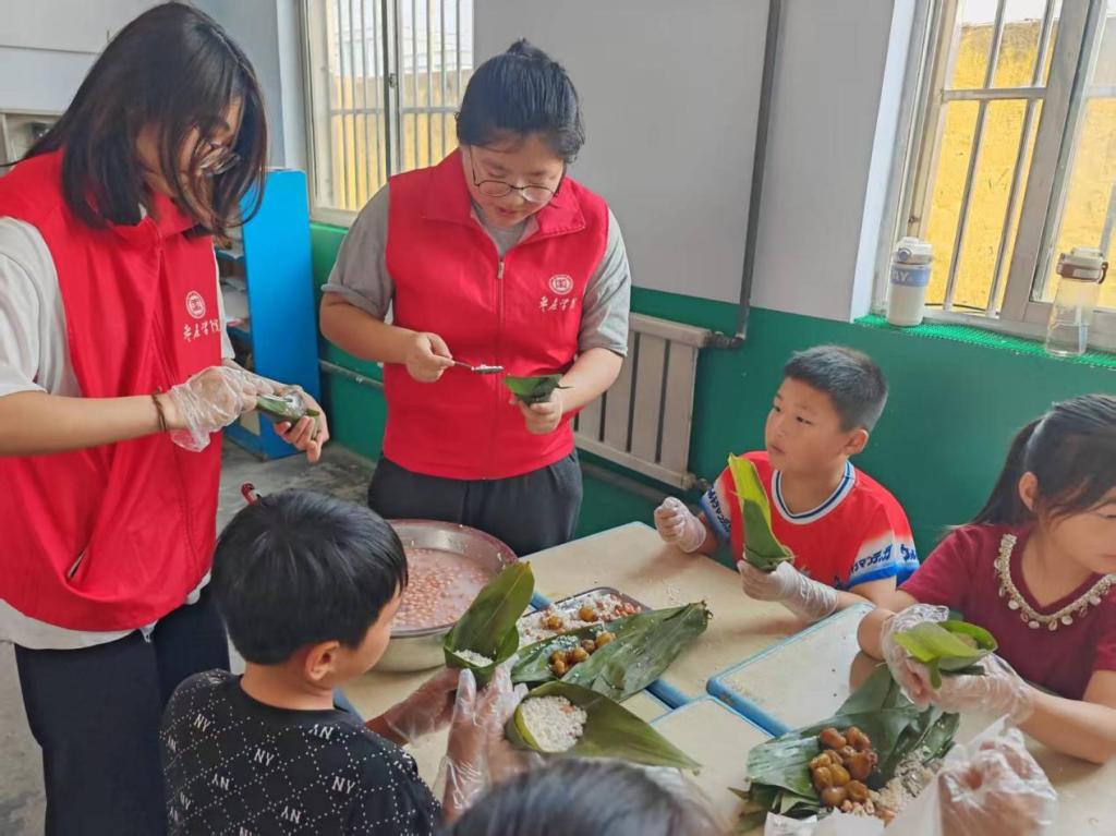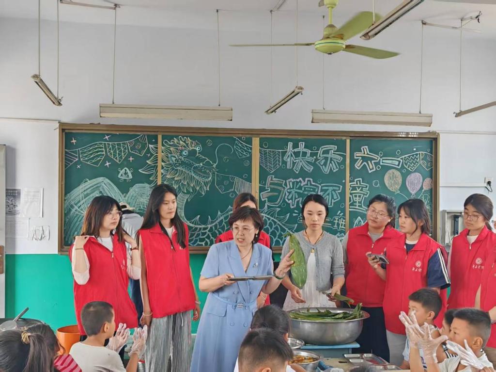 为传承端午传统文化,让同学们感受传统节日魅力,同时增强团队凝聚力,培养志愿者服务精神。5月30日,SUNBET申博SUNBET申博(传媒学院)志愿队走进岩湖小学开展包粽子主题活动,为校园注入了浓厚的端午温情,盐湖小学书记孙晋玲亲临现场,与师生们共同感受传统文化的魅力。