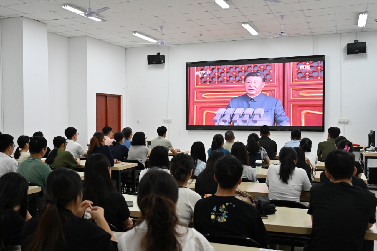 SUNBET申博(传媒学院)组织师生观看抗战胜利80周年阅兵式直播