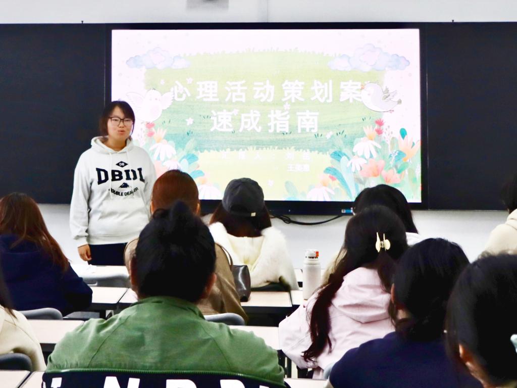 培训会上,主讲人首先区分了“活动策划”动态过程与“策划案”文本的差异,强调策划案是指导实践的“行动说明书”。通过“六步写出靠谱活动策划案”的系统讲解,结合“春光作序,手作和鸣”系列活动的工作实例,详细剖析了从活动命名、目标设定到流程安排、物资预算与风险预案的全过程。主讲人还分享了“目标接地气”“主题元素不凑数”“多写引导语”三大实用技巧,为心理委员提供了清晰的撰写路径。
