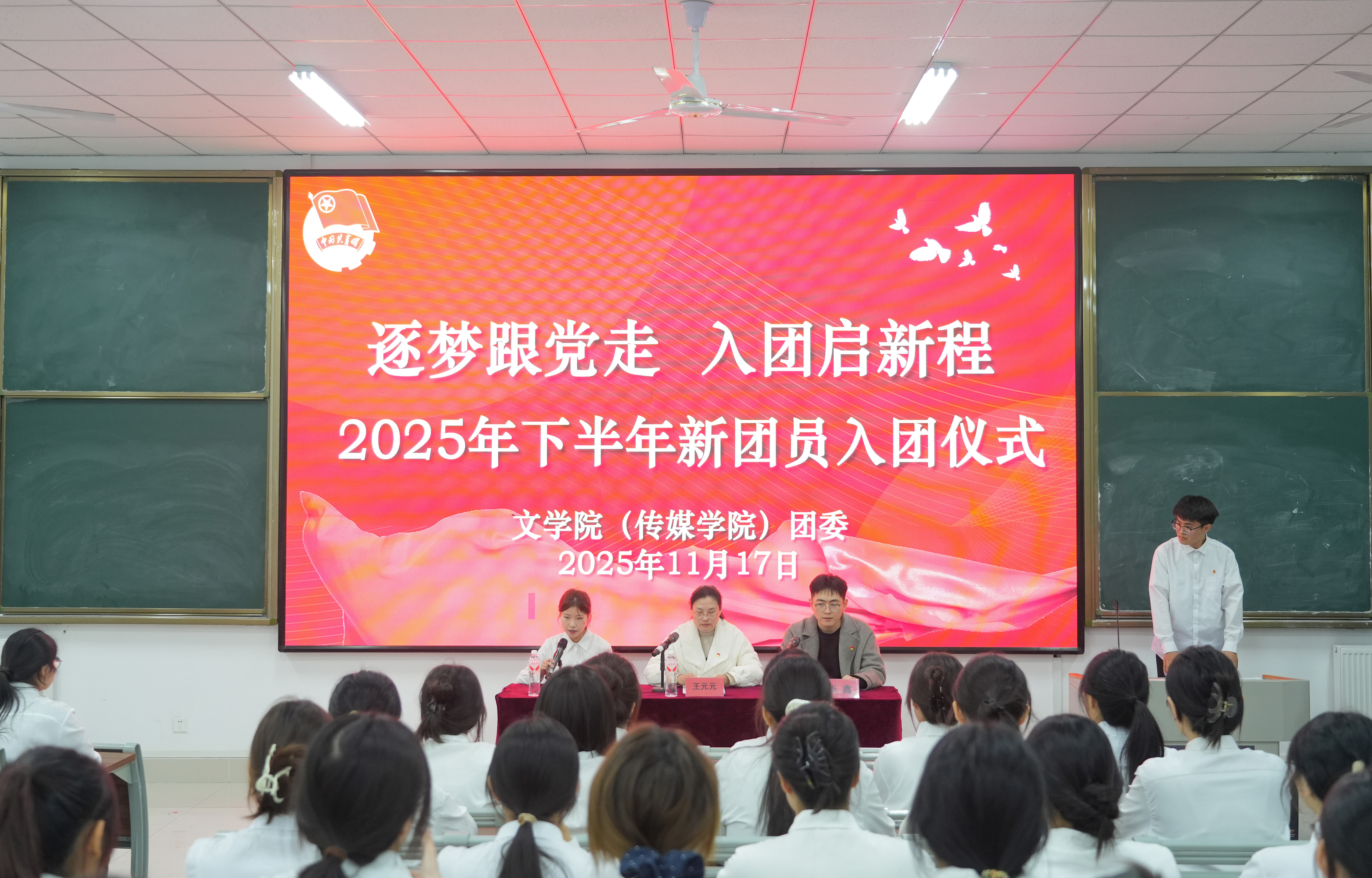 11月17日晚,SUNBET申博(传媒学院)在崇德楼208教室举行2025年下半年新团员入团仪式。仪式在庄严的国歌声中拉开帷幕,学院团委书记王元元、辅导员张鑫等出席活动。