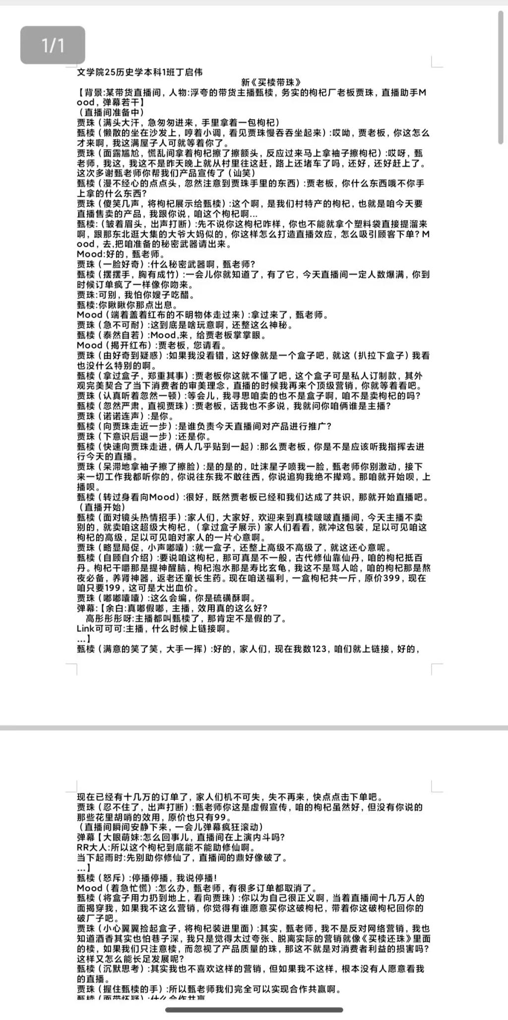 大赛第一阶段,各个班级踊跃组织,100多名同学积极参与创作,参赛作品题材丰富多样,构思新颖、巧妙,有人用幽默的对话写家庭之间的趣事,有人用细腻的独白讲述成长的见闻,也有人将传统故事赋予新的理解,展现出当代大学生敏锐的观察力、优秀的表现力和深刻的批判性。