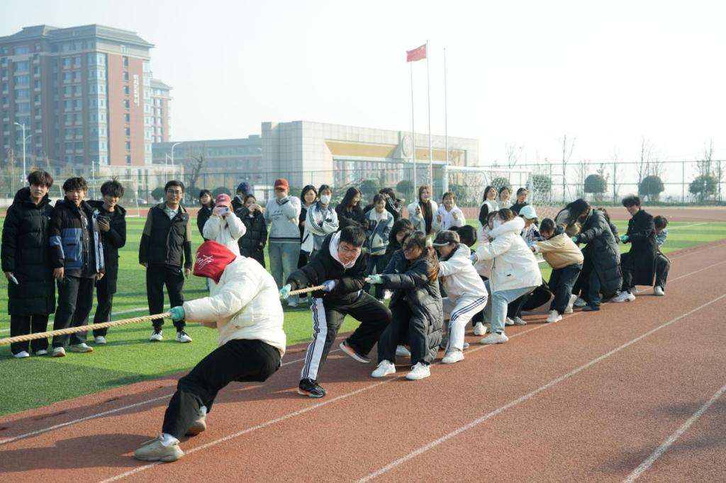 班级拔河比赛更是将现场氛围推向高潮。各班队员紧握长绳、拼尽全力,场边师生呐喊助威,充分展现了班级强大凝聚力与不屈的拼搏精神。