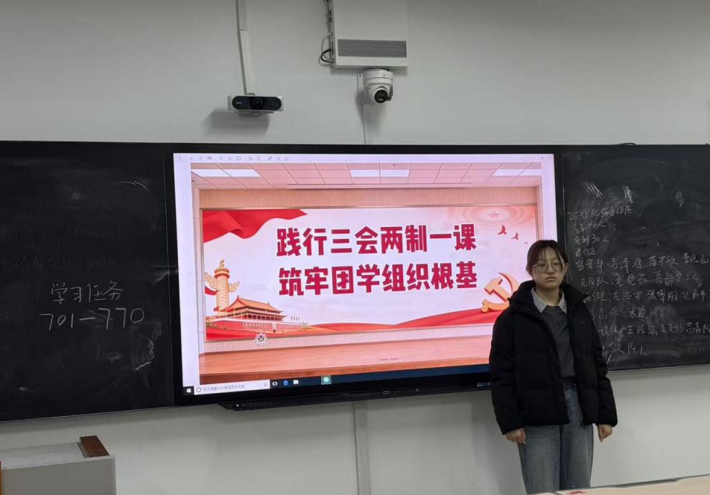 本次主题团日活动精准聚焦“三会两制一课”制度的深入践行,确保活动内容充实、形式多样、成效显著。活动伊始,在团支书的带领下,同学们集中学习了关于“三会两制一课”的核心要求,重温了共青团的性质、纲领与使命。同时,结合近期共青团中央发布的相关工作部署,重点解读了“三会两制一课”在强化团员教育管理、提升团组织凝聚力和战斗力中的关键作用。