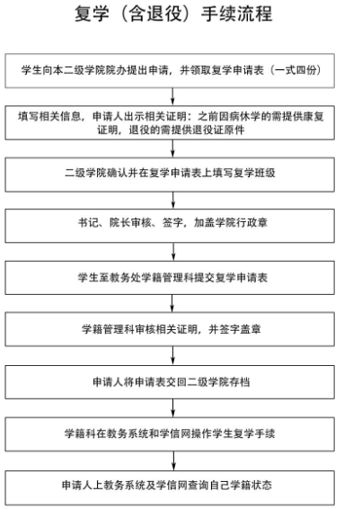 SUNBET申博学籍异动(休、复、退学)流程图
