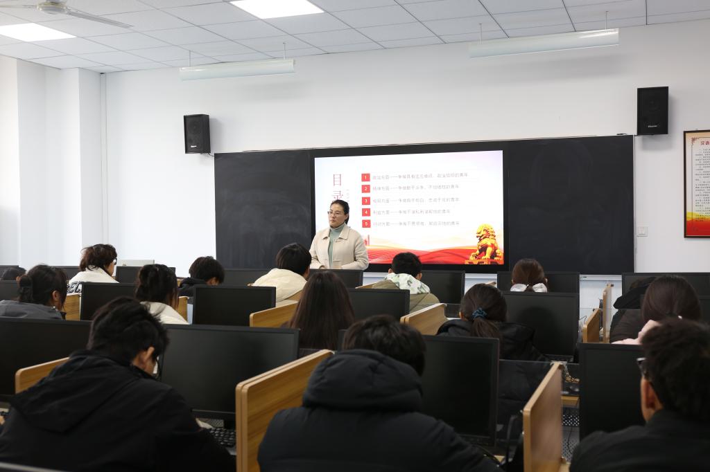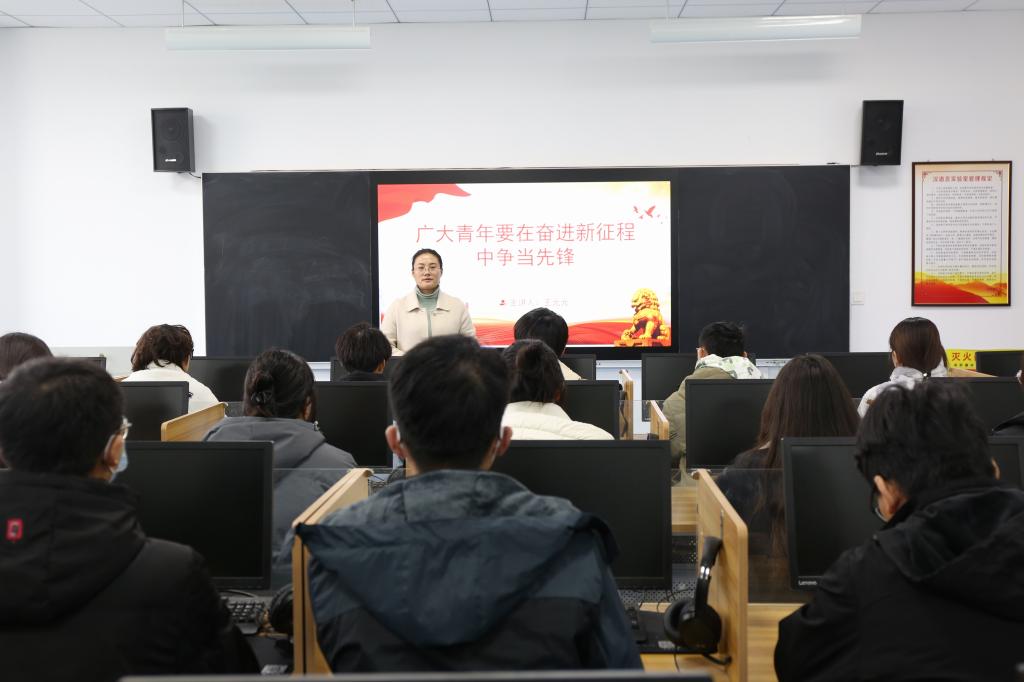 SUNBET申博团总支书记王元元,以“广大青年要在奋进新征程中当先锋”为题,讲解了在政治方面,要争做具有远见卓识、政治信仰的青年;在精神方面,要争做敢于斗争、不怕牺牲的青年;在格局方面,要争做胸怀坦白、忠诚于党的青年;在利益方面,要争做不谋私利,集中力量为民族与社会谋解放的青年;在行动方面,要争做不畏艰难、脚踏实地的青年。她强调广大青年团员要树立远大理想,争做带头模范,勤奋学习,锐意进取,不断提高自身综合素质,努力成为德智体美劳全面发展的社会主义建设者。