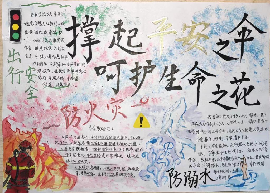 本次活动,通过开展“提高安全意识,建设平安校园”主题团日学习、PPT制作、征文和手抄报等形式体现。主题团日学习,通过分享生动的案例故事,提高学生们的安全意识,掌握各种安全知识,加强对突发事件的应急措施。PPT制作选手们以“安全”这一关键词为创作核心,将新颖的视频创作融入到PPT中,体现出提升安全意识的重要意义。手抄报制作的选手们同样突出“安全”这一主题,采用手抄报、漫画、海报等多种形式创作,精美的图画,端正俊美的字体,使得作品画面浑然一体,展现了学生扎实的艺术创作功底。征文比赛的选手们文思泉涌,笔底生花,将一篇篇感人肺腑的有关安全的小故事娓娓道来,展现出学生的文采斐然。活动结束后,评审团充分肯定了同学们的作品,再一次强调了安全教育的重要意义,希望同学们可以在以后的生活中提高安全意识,建设平安校园。