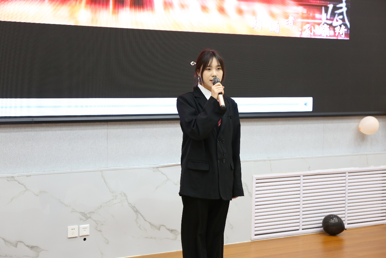 比赛中,现场评委严格按照比赛规则,全神贯注地倾听,时不时地点头,有时还会互相交换意见。他们用专业的眼光去评判,用公正的态度去打分,从朗诵内容、语言表达、台风礼仪、创新效果等方面对选手进行细致评价。经过激烈的角逐,最终23汉语国际教育 孙康绮,获得本次比赛冠军。