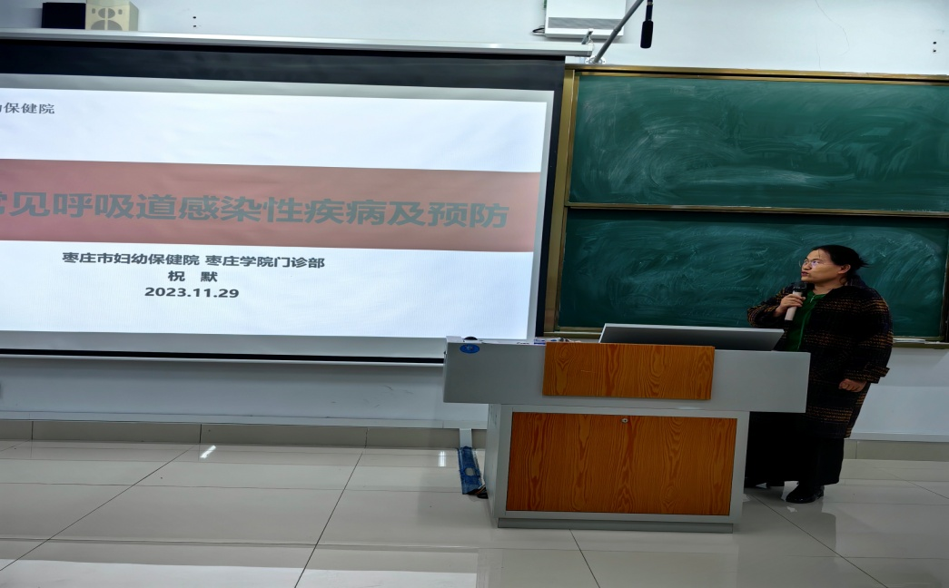 为预防和控制秋冬季节传染病的发生与流行,保护学生的身体健康,11月29日下午,SUNBET申博联合枣庄市妇幼保健医院在增信楼3121教室举办开展秋冬季传染病预防知识讲座及义诊活动。市妇保院美容科主任张娜、全内科副主任医师祝默、中医科医师胡朝乾应邀出席,校医院副院长陶莉以及师生200人参加活动。