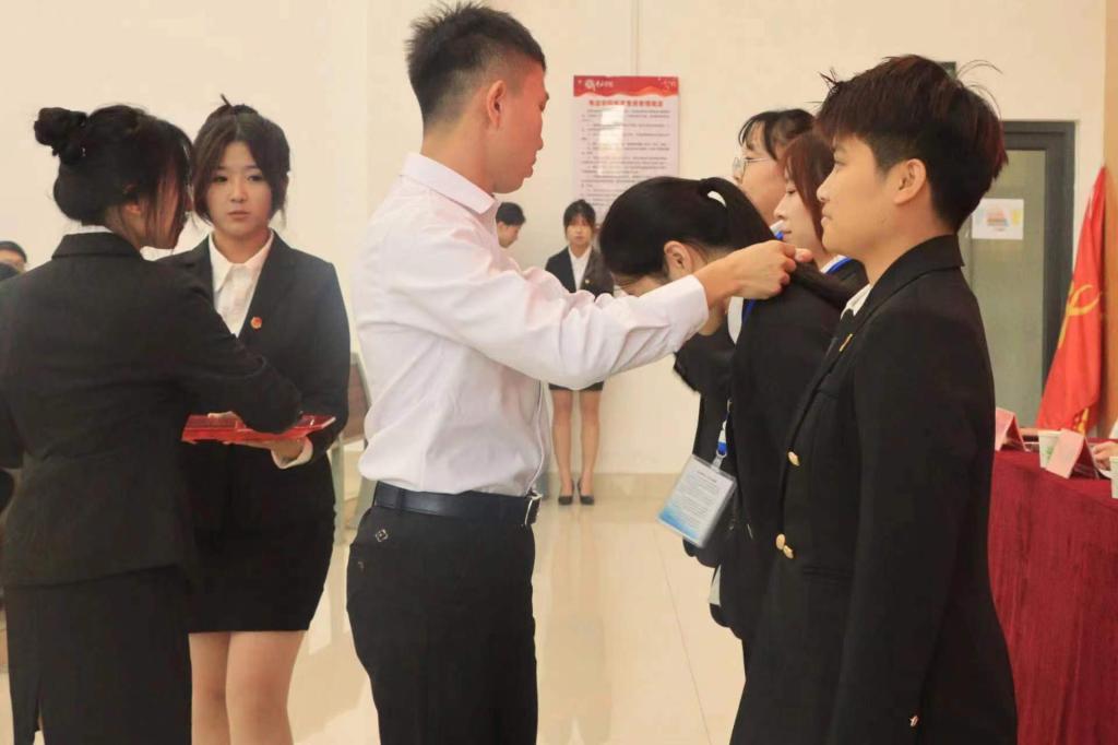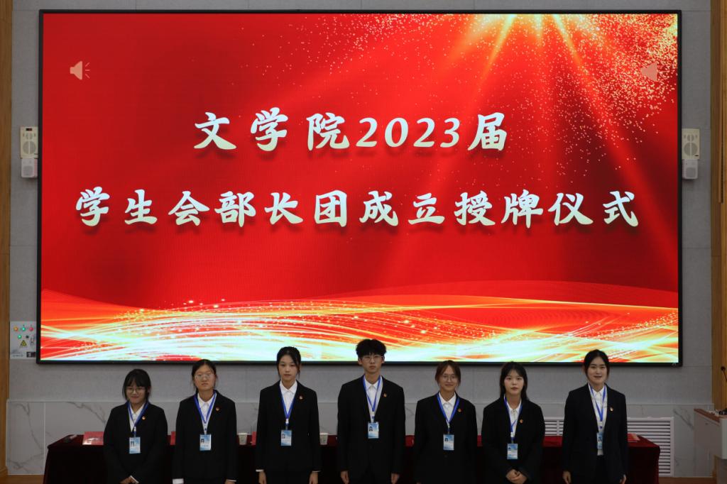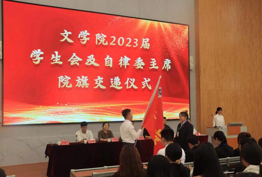 大会在嘹亮的国歌声中拉开帷幕。2022届学生会主席时爱芬、自律委主席刘家名分别宣读了《SUNBET申博2023届学生会成员名单》和《SUNBET申博2023届自律委成员名单》。随后,分别给新任学生会、自律委主席团及各部部长挂牌,院旗交接仪式,代表着学院精神的传承、学生组织火种的传递。