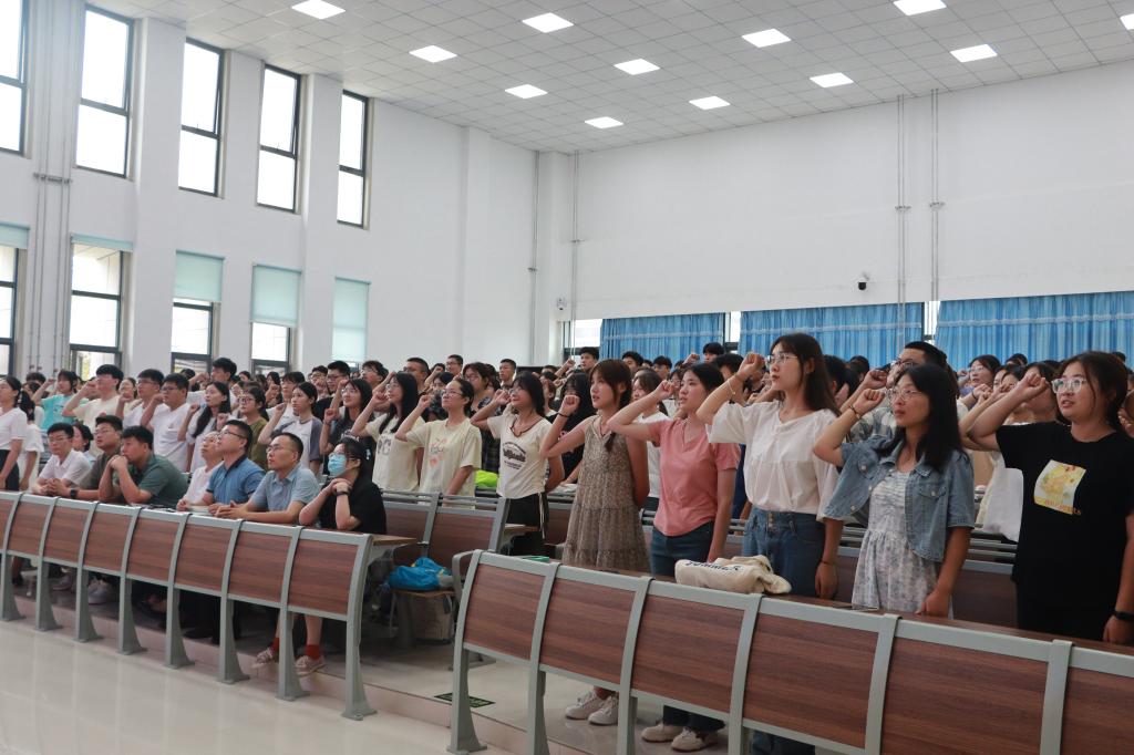 青年教师代表刘钰,激励同学们在担当中历练,在尽责中成长,勉励同学们积极努力地参与自身学科的建设,做复合型人才、书写自己的人生篇章。2021级汉语言文学专业程晓云作为优秀学生代表,通过自己过去两年的大学生活感悟和自身成长经历,告诉大一新生既要脚踏实地,又要仰望星空,既要结合实际,又要有理想的灯塔照亮自己前行的路。新生代表周艳萍希望和大家一起树立远大的奋斗目标,争做一名品学兼优的好学生。典礼的最后,由2023级汉语言文学本科二班张兆臻带领全体2023级新生进行了庄严的入学宣誓。