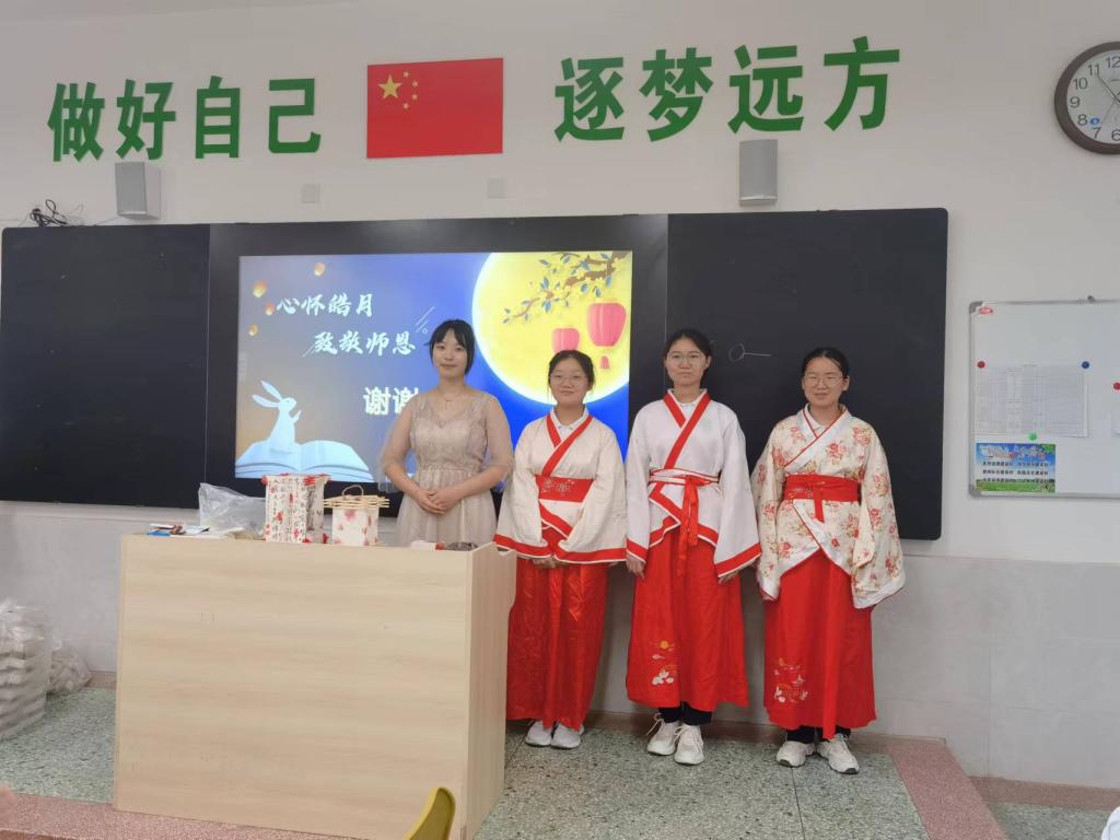 活动中,刘俐通过讲述中秋节的起源和传统习俗,让学生们更加了解中国的传统文化习俗。同学们在朗诵诗词、观看中秋节视频之后,积极分享自己从诗词中所感受到的情感与体会。同时,让同学们身着汉服,参与猜谜语活动,同学们真切地感受中国优秀传统文化的魅力,体会到中国优秀传统文化的博大精深。通过吟诵感恩教师诗句,更加激发了同学们对老师的敬爱、感激之情。