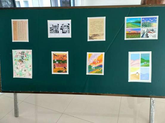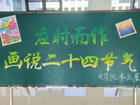书画展通过书法和绘画两种形式描绘二十四节气,同学们积极参与,最终选出十二幅作品进行展示,画面展现了从立春到大寒不同节气的变换,画面或春花灿烂,或白雪皑皑,每一张都透着日月山河的万种风情。
