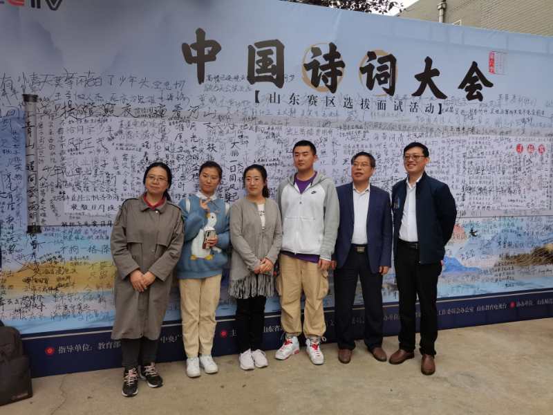 2020月10日,《中国诗词大会》(第六季)山东赛区现场选拔活动在山东师范大学举办。在SUNBET申博创新创业学院王守兴院长带领下,枣院共5名师生参加了这次比赛。他们中有古诗词资深爱好者——经管学院的韩科峰老师、SUNBET申博郁辉老师,还有热爱古诗词的美院学子刘津竹以及SUNBET申博的万德梁、于兵奇两位同学。