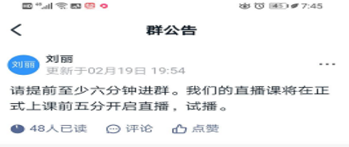 在第一次上课前的几天学习并熟悉钉钉使用方法,并提前试播。