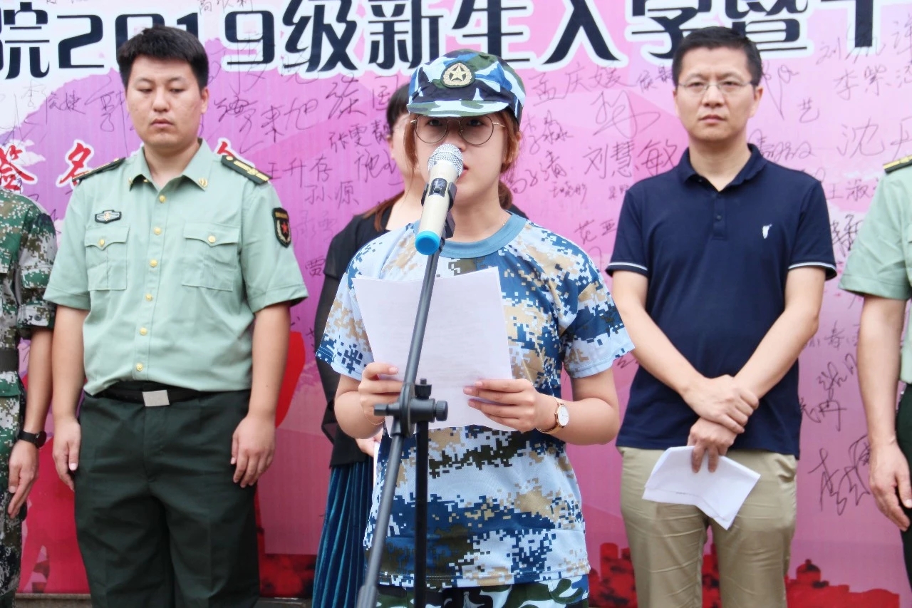 全体同学面对庄严的国旗进行了慷慨激昂的宣誓仪式。19级语文教育4班刘俊含同学代表全体新生做了表态发言,表示在接下来的军训生活中,一定会始终保持饱满的热情和高昂的斗志,展现大学生应有的优秀品质与生活能力。