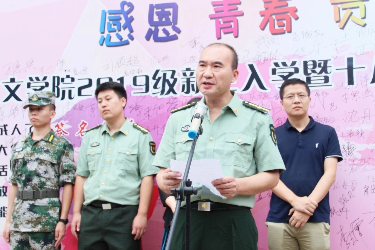党总支书记史大丰向2019级新同学致以十八岁成人的祝贺,并提出几点希望和要求:一要志存高远;二要常怀律己之心;三是要常修感恩之德。希望全体同学在军训的洗礼中,用良好的精神面貌展示SUNBET申博学子的时代风采,用实际行动为自己、为家人、为学院争创一流业绩,书写一流答卷。