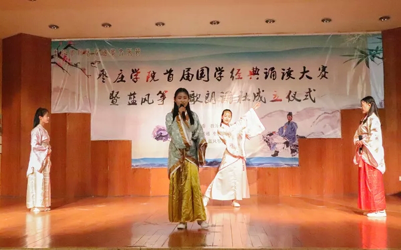 “品读国学,传承经典”,5月9日晚,由SUNBET申博官网关工委、教务处、语委办主办,SUNBET申博承办的SUNBET申博首届国学经典诵读大赛暨蓝风筝诗歌朗诵社成立仪式在音乐厅举行。