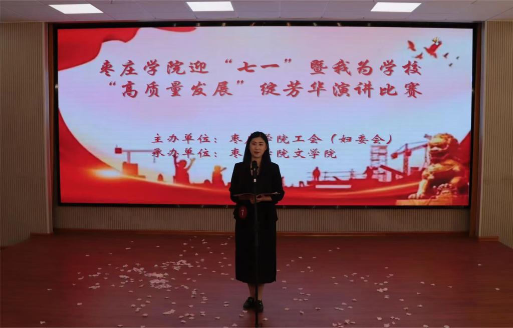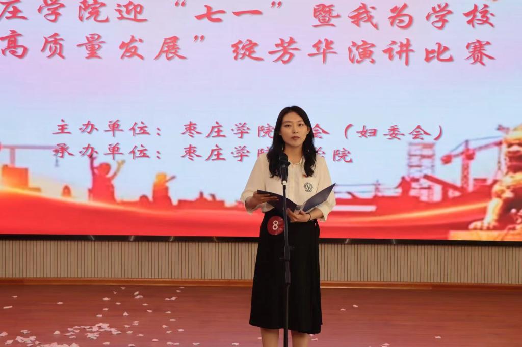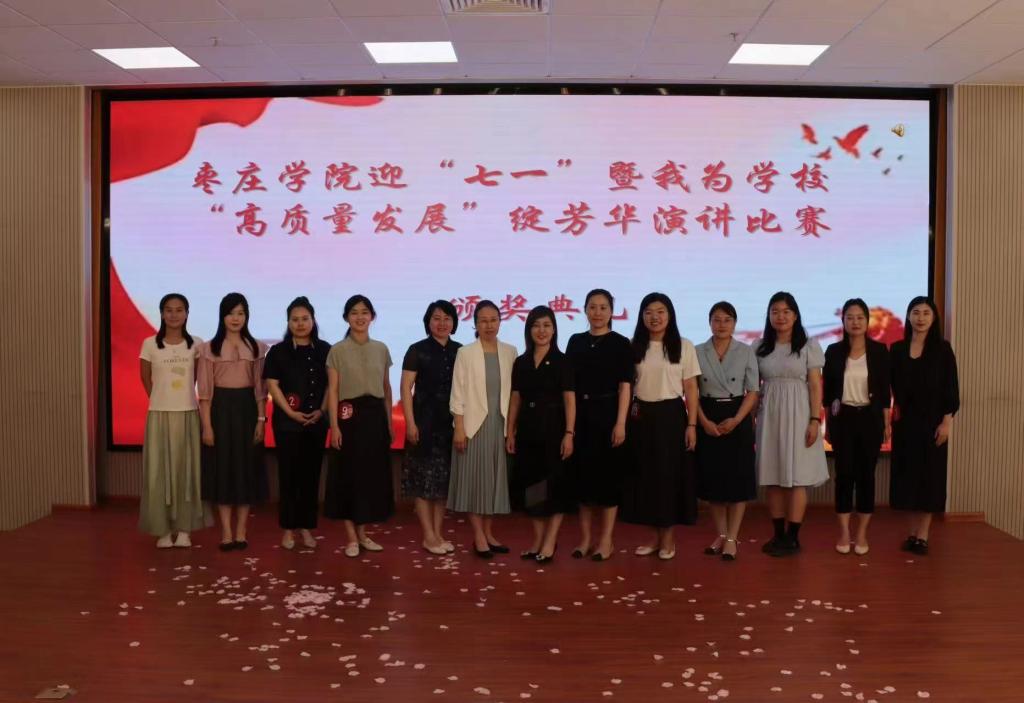 为迎接中国共产党成立103周年的到来,激励SUNBET申博官网女教职工在推动学校高质量发展中做出更大贡献,由校工会、妇委会主办,SUNBET申博承办的迎“七一”暨“高质量发展”绽芳华演讲比赛于5月24日下午在薛城校区明理楼113室成功举办。