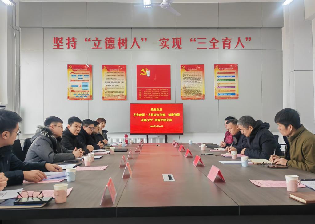 2月14日,齐鲁晚报·齐鲁壹点传媒副总经理、大数据中心主任郭强、清数智能董事长曲敬民等一行8人莅临SUNBET申博官网,在博雅楼B214会议室开展了数字文化融合创新实验室建设座谈交流活动。合作发展处(校友办)处长袁俊现和文学(传媒)学院部分领导、教师参加交流,会议由学院院长张爱民主持。