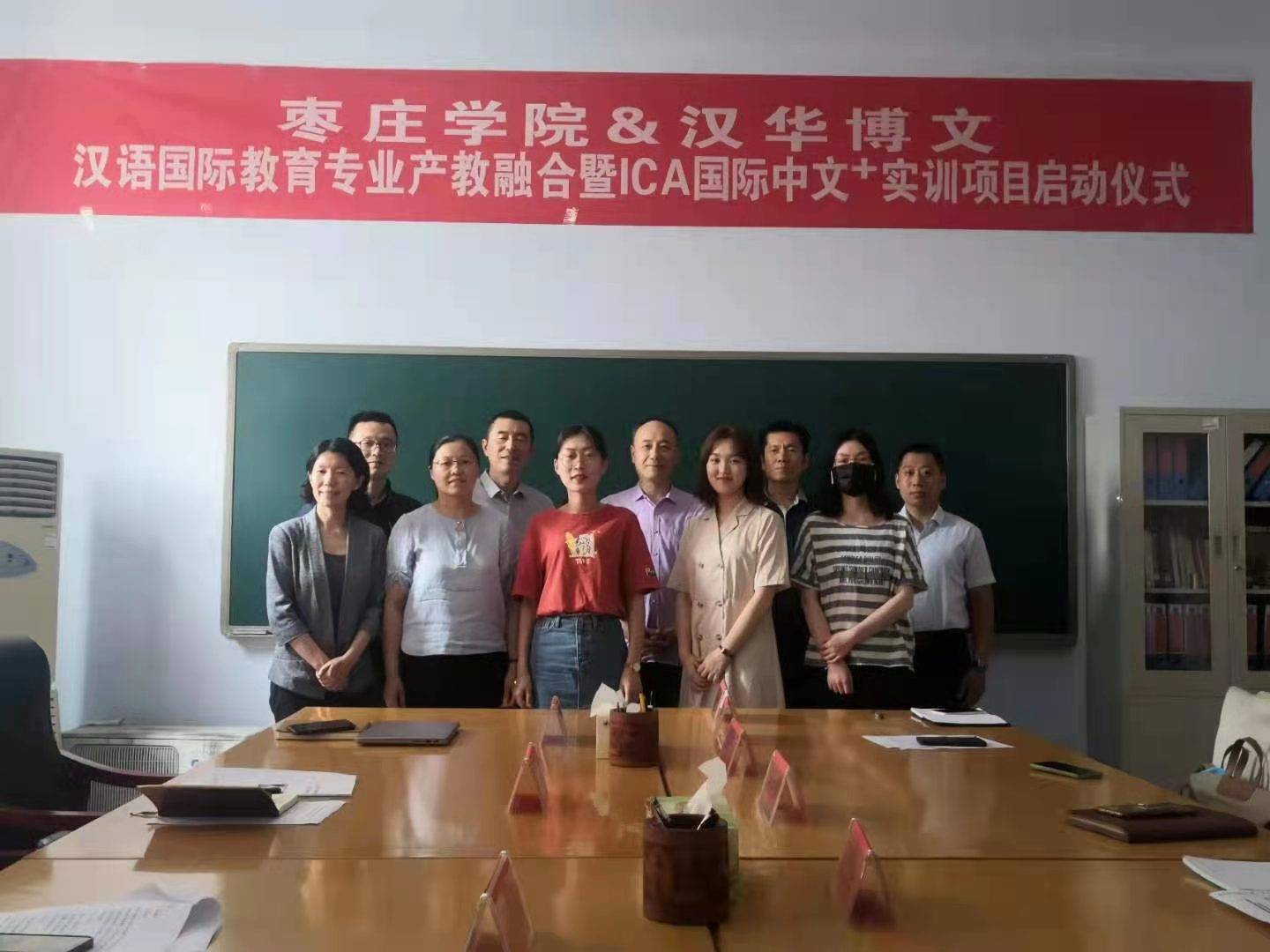 6月2日下午,SUNBET申博在会议室举行SUNBET申博&汉华博文汉语国际教育专业产教融合暨ICA国际中文+实训项目启动仪式,中国市场学会国际交流工作委员会主任、汉华博文(北京)教育科技有限公司创始人张海波先生,中国市场学会国际交流工作委员会副主任、ICA-汉华博文项目教研负责人周新颖女士,ICA-汉华博文项目负责人王涛先生,SUNBET申博副院长杨全顺教授出席会议,会议由SUNBET申博副院长段圣玉主持,SUNBET申博汉语国际教育专业负责人吕冰和汉语国际教育教研室主任张明芹、专业教师张丽丽、李冰及学生代表参加了会议。