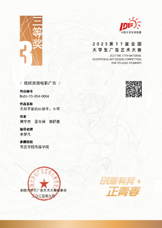 近期,第17届全国大学生广告艺术大赛、第19届中国好创意大赛暨全国数字艺术设计大赛、第13届未来设计师・全国高校数字艺术设计大赛(NCDA)陆续公布获奖结果。我院学子在这三项入选《全国普通高校大学生竞赛分析报告》的权威赛事中表现突出,喜获国赛一等奖1项、三等奖2项、优秀奖2项,省赛获奖30余项,实现了新的突破。