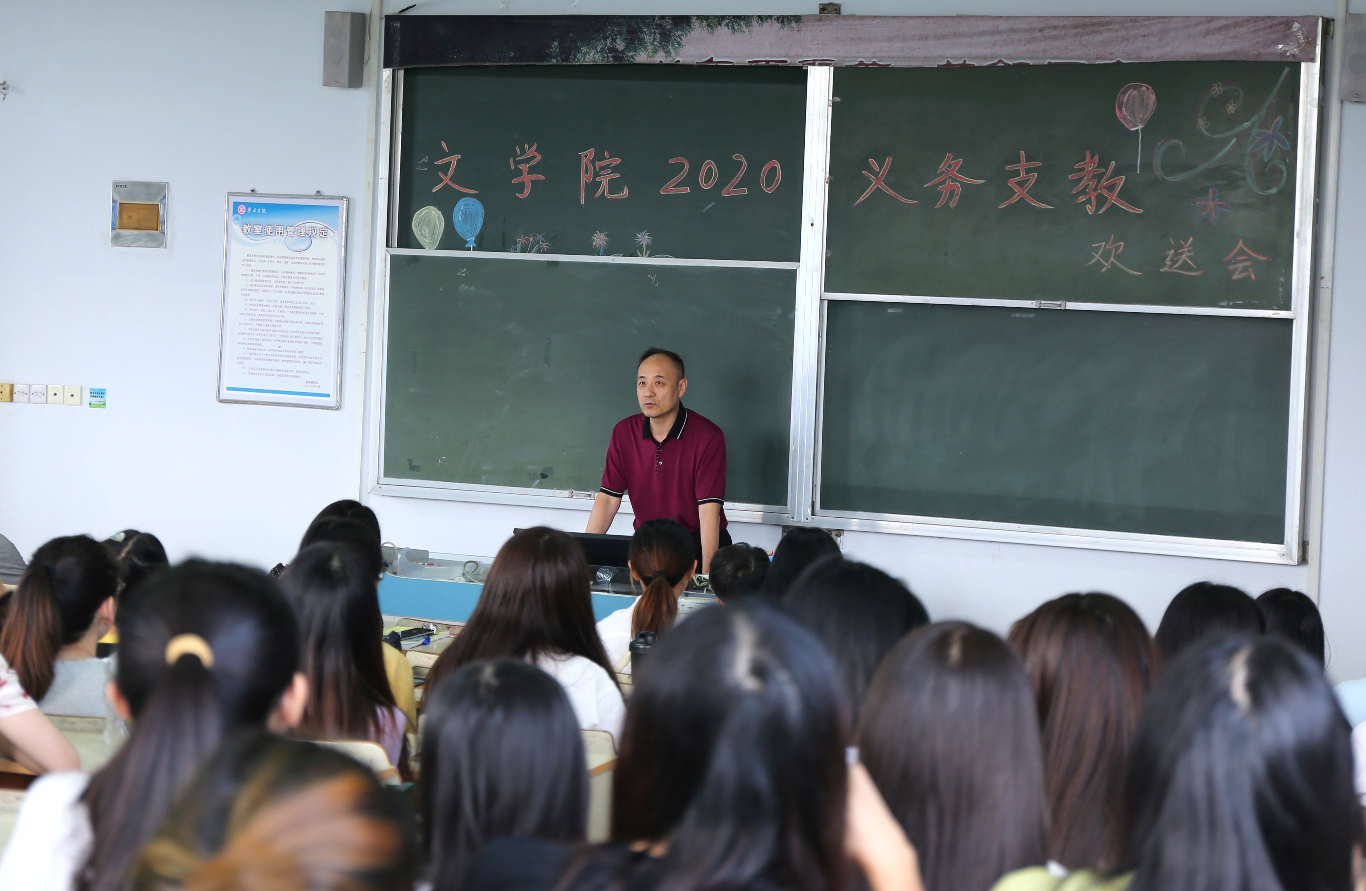 院党总支副书记王昌龙最后又强调几个细节工作。广大支教学生表示,一定不辜负学院期望,用心支教,用爱教学,圆满完成此次支教任务。最后,全体支教学生与学院领导合影留念。