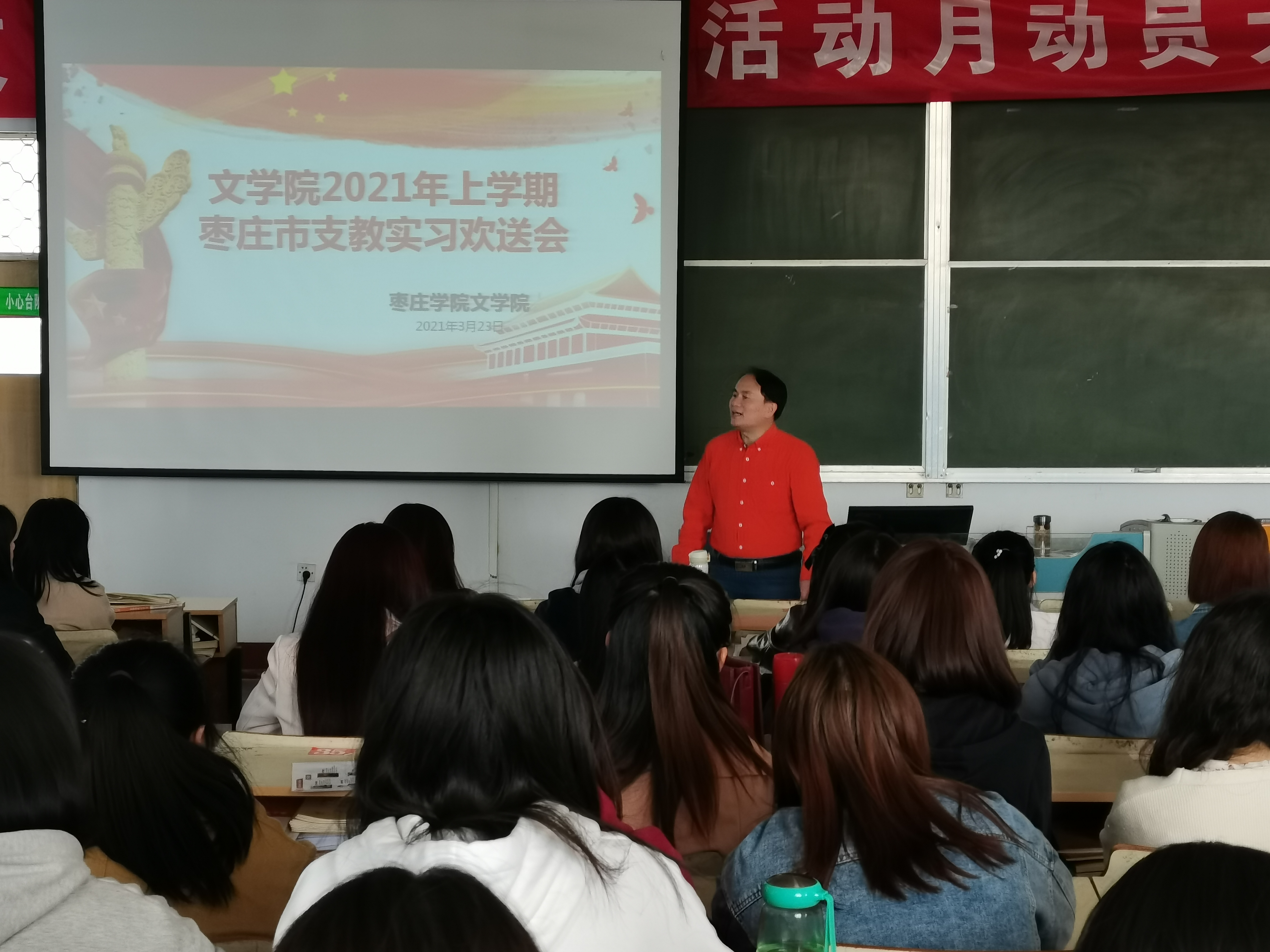 3月23日下午,SUNBET申博在文科楼217教室举办了2021年上半年枣庄市支教实习欢送会。本次欢送会由SUNBET申博党总支书记宋建修主持,即将奔赴枣庄各市区支教的学生到场参加。