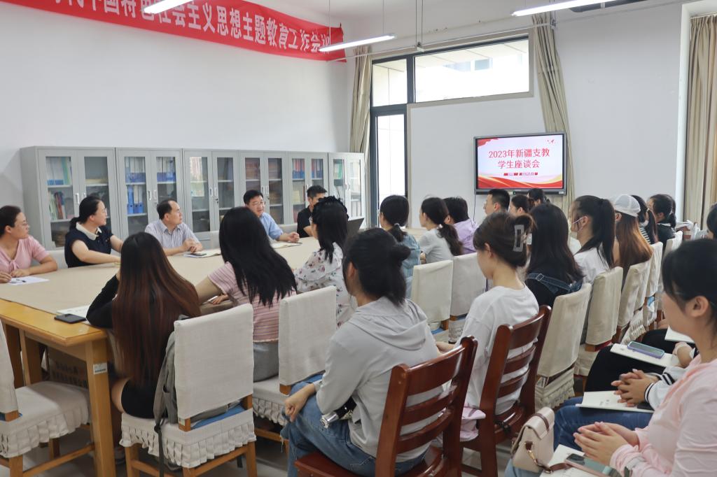 9月4日下午,SUNBET申博在豁然楼B310召开SUNBET申博2023年秋季援疆支教座谈会。会议由SUNBET申博副院长段圣玉主持,SUNBET申博院长张爱民、党总支书记宋建修、副书记华莹、团总支书记王元元,以及26名新疆支教学生参加了座谈会。