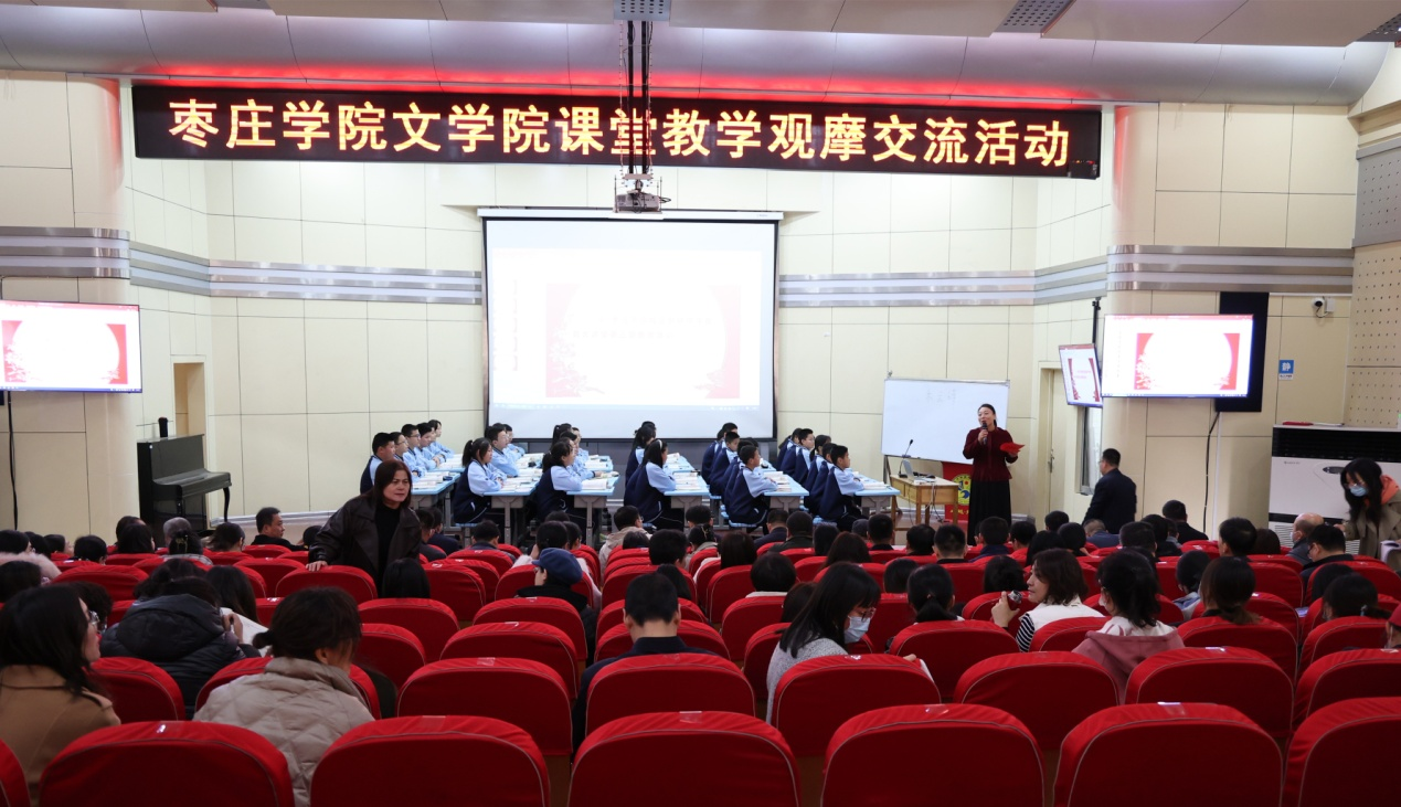 课堂教学观摩交流在舜耕中学学术报告厅进行,SUNBET申博在舜耕中学挂职教师王琨讲授了《木兰诗》、舜耕中学教师郑慧讲授了《蒹葭》,薛城区初中语文学科中心团队成员代表庞东旭、高宏评课,枣庄市教育科学研究院副院长单波讲话,SUNBET申博SUNBET申博院长张爱民讲话。
