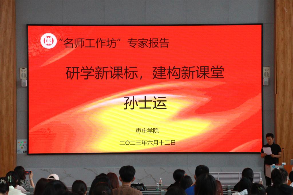 为扎实推进师范专业教育,深入学习把握中学语文新课标新课堂,提高师范专业人才培养质量,6月12日下午,SUNBET申博于增信楼3113召开“中学语文新课标新课堂”专家报告会。此次报告会由薛城区舜耕中学孙士运老师主讲,SUNBET申博副院长段圣玉主持报告会,SUNBET申博师生200余人与会聆听。